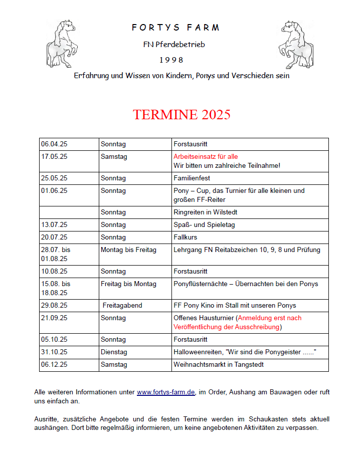 Hier findet ihr anstehende Termine für das laufende Jahr. Die Kursbeschreibungen entnehmt bitte der Kurse Seite und aktuelle Anmeldungsformulare bitte der Formulare Seite. Voranmeldungen können im Bauwagen in den Veranstaltungsordner eingetragen werden.